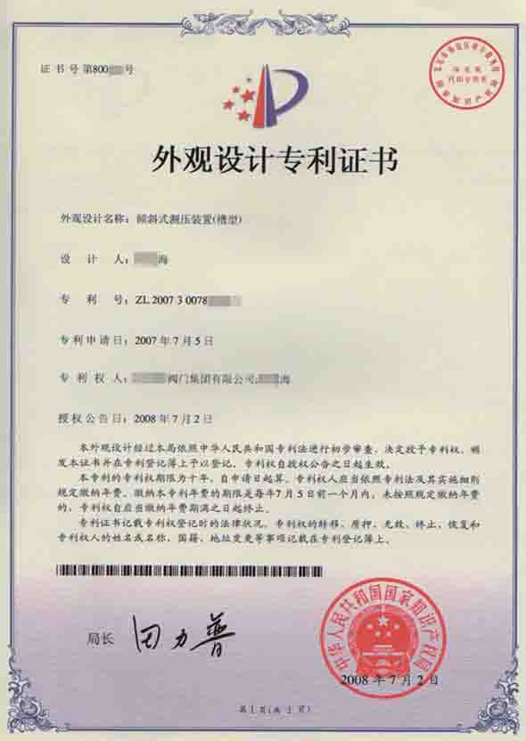 外觀設計專利證書