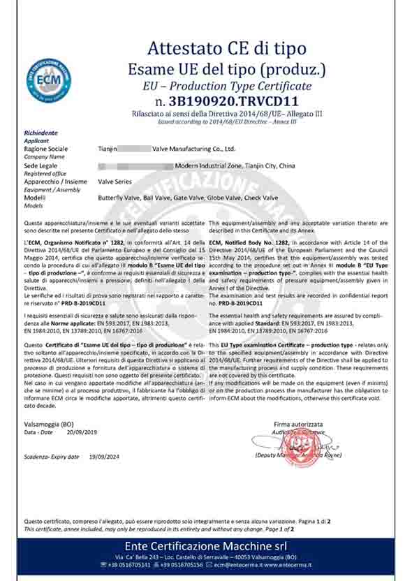 意大利CE認證證書