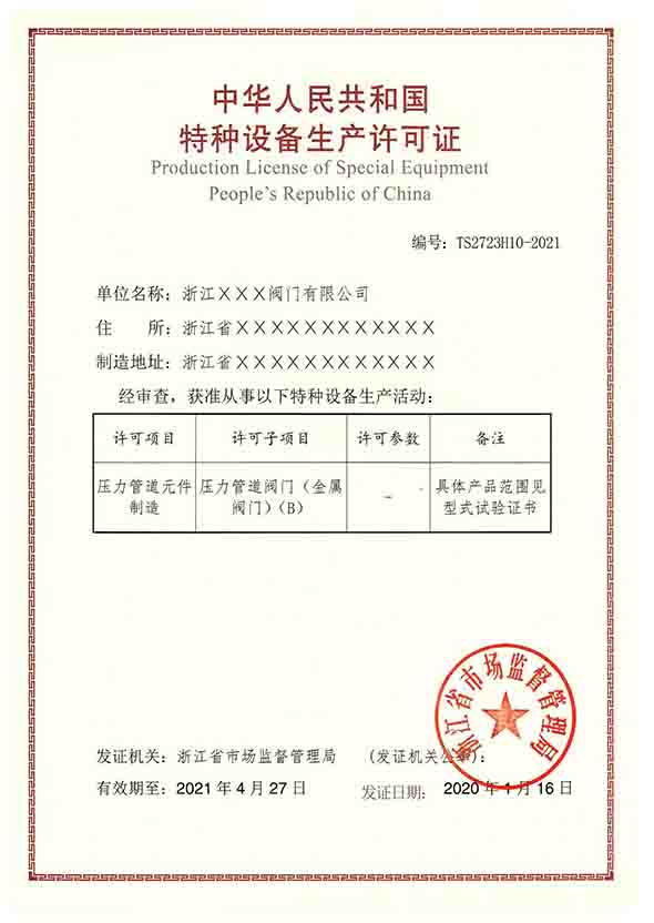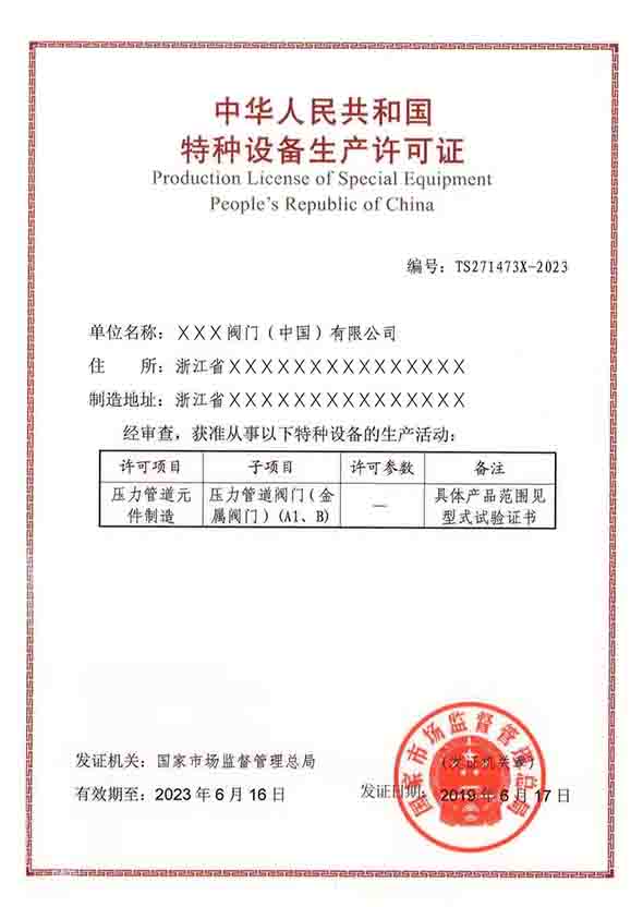 特種設備生產許可證